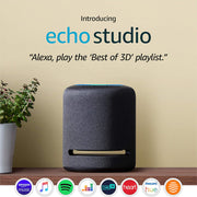 Hearing is believing. Whatever the source, Echo Studio makes your music sound incredible. Dolby Atmos technology enables a multidimensional audio experience, adding space, clarity and depth. Echo Studio also plays new music formats that have been mastered in 3D.